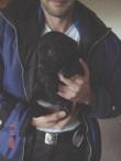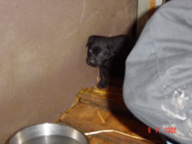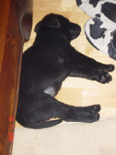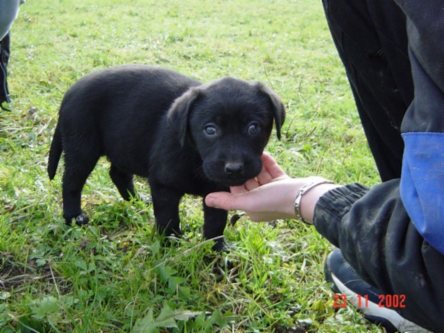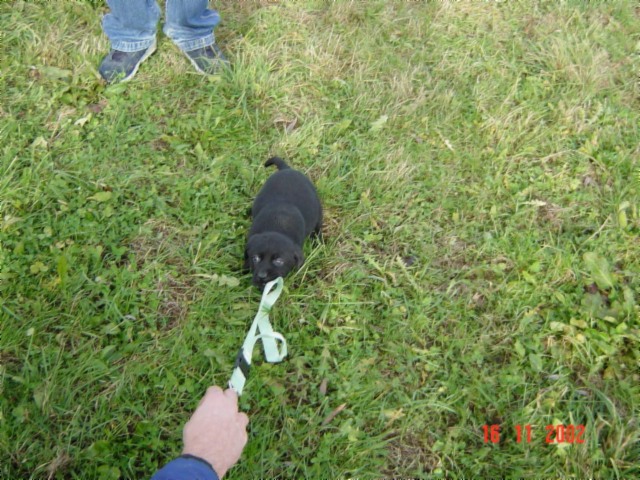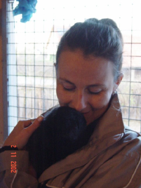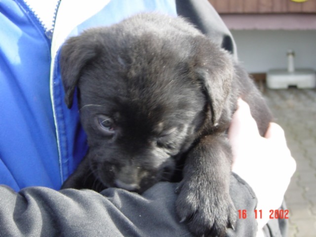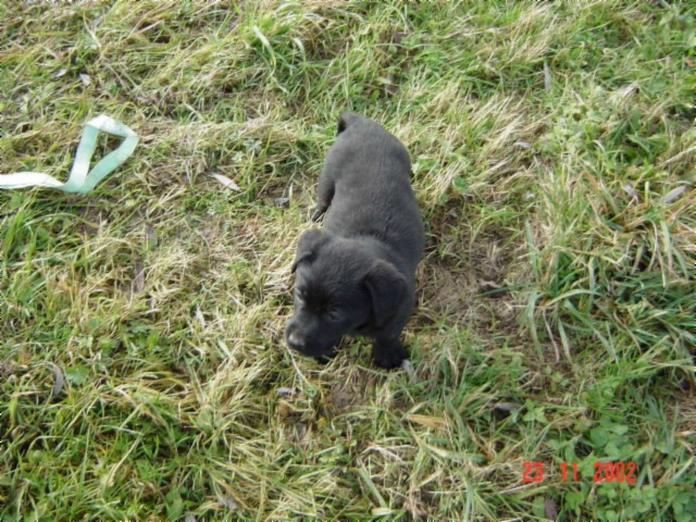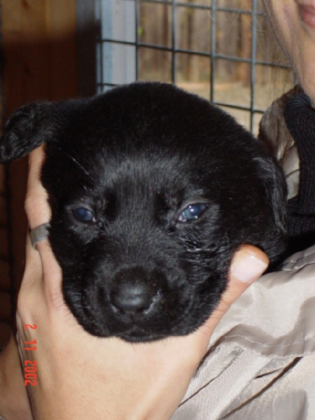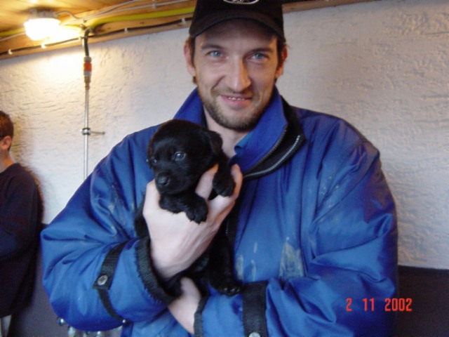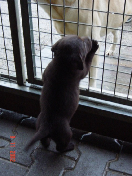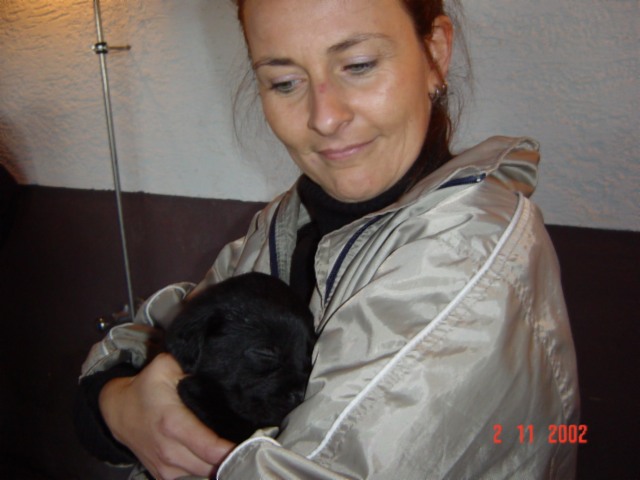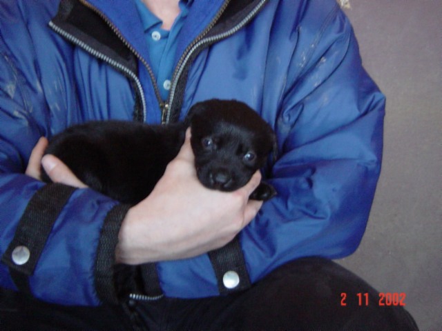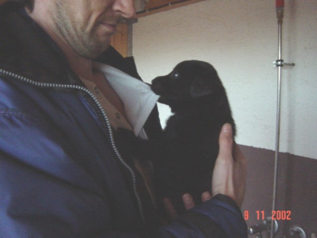 D-DAY (28.11.02) mit 8 Wochen: Da kamen sie mit dem großen weißen Auto, *schon wieder*, und.......... plötzlich war alles anders, ich durfte im Hof mt "denen" spielen und alles erkunden, während sie wieder über mich quatschten (ich weiß es genau!!). Plötzlich kam MAMA und ich durfte sogar nochmal an Ihre Zitzen lecker Milch saugen. Ein letztesmal, wenn ichs nur geahnt hätte.