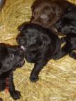 Fünf Schoko - Welpen und vier Schwarze - Welpen. Bei uns Schwarzen war nur ein Rüde dabei, der durch Zufall nur 3 km entfernt wohnt. Mein Bruder NERO , mit dem ich noch heute regelmäßig in der Früh Gassi und gelegentlich auch Schwimmen gehe.