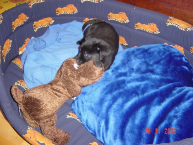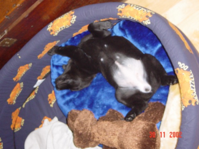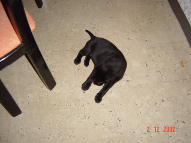 Mit 4 Wochen immer noch nix neues, außer daß alle zu mir Bambi sagen: Wer ist das nur???? *gähn*. Jedenfalls hab ich eins meiner Schwesterchen am Schwanzi gepackt und habs über den Boden "geschliffen". Achja, angeblich hilft ja quicken, aber sicher nicht bei mir :)) (kann ja auch keine Hundebücher lesen, zum Glück!!). Noch heute sagen Herrli und Frauli zu mir "damals hätten wirs wissen müssen!!".