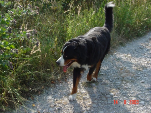 ich "zartes, graziles" Doggy voran und hinter mir als Bodyguards die DREI Muskeltiere :)) mit ca. 120 kg Lebendgewicht :)))