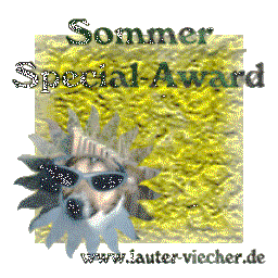 Für meine Urlaubsbilder 2003 habe ich diesen tollen Special - Award bekommen, an dieser Stelle ein herzliches Dankeschön an Hörnchen & Krümelchen und die restliche Bande.